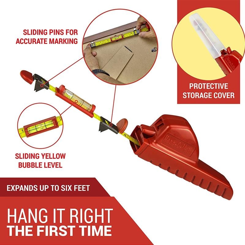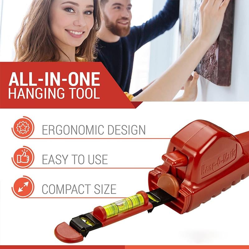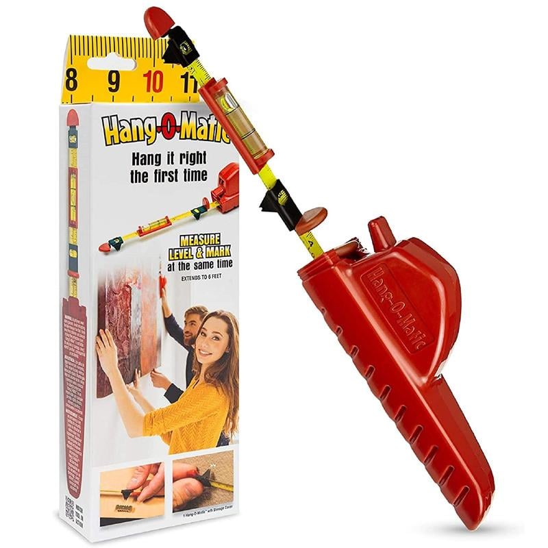 ALL-IN-ONE PICTURE HANGING TOOL. It’s difficult to hang pictures, mirrors, shelves, TVs and other items straight the first time. Designed to make the process easier, the Hang-O-Matic measures, levels and marks the wall at the same time.
